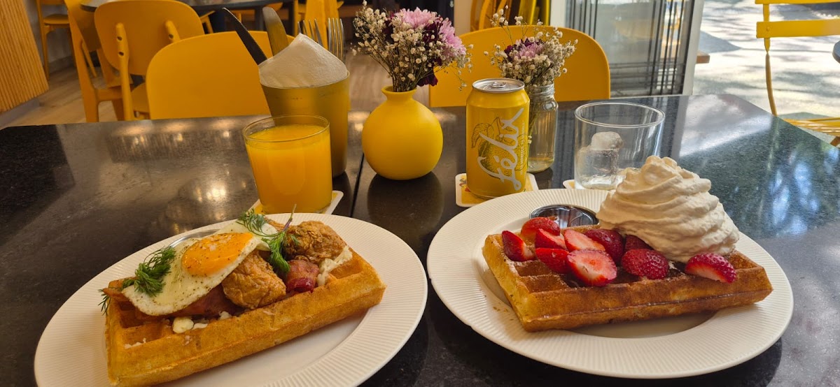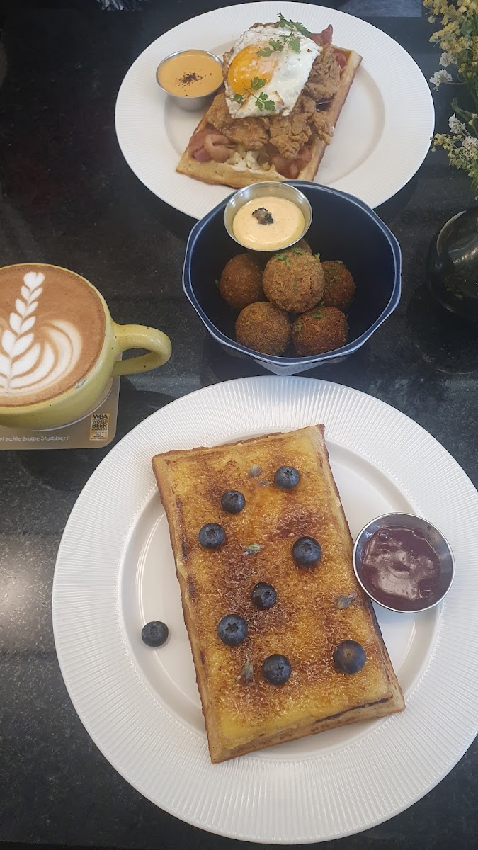I was here for breakfast. The atmosphere is very pleasant, the music is nice, and the waffles are delicious. The girls who were serving were very friendly. It makes you want to come back again. The coffee is tasty, and all the products are very fresh.