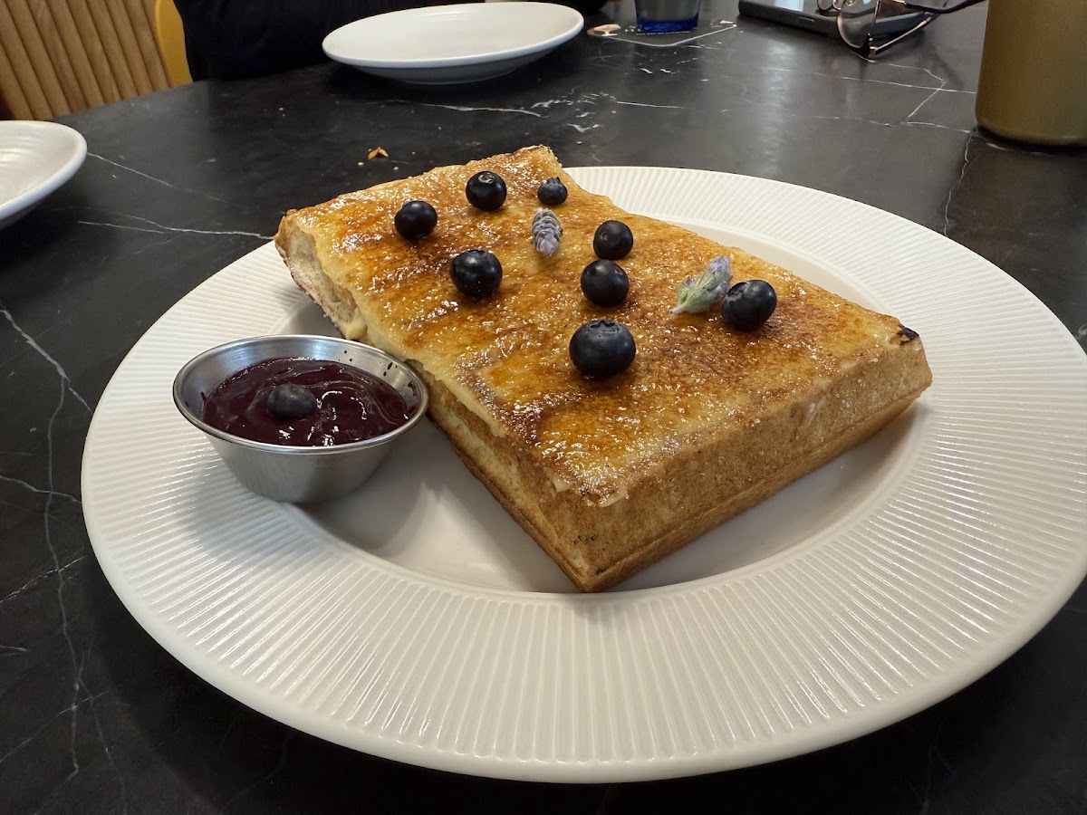 Amazing food, the Caramel French toast was delicious and not too sweet. The staff was very kind, they even gave a blanket for my girl to sit on the couch with me